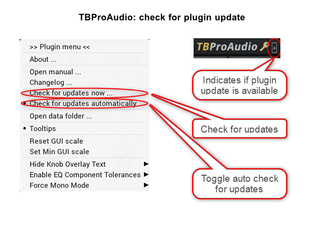 TBProAudio added check for update functionality to all plugins. Also switchable auto check was added.