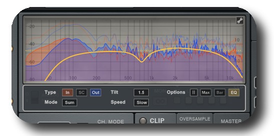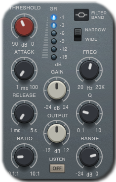 The double compressors control the dynamics of the signal, either stereo or Mid/Side.