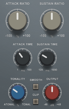 The transient shaper modifies attack and sustain of the audio signal
