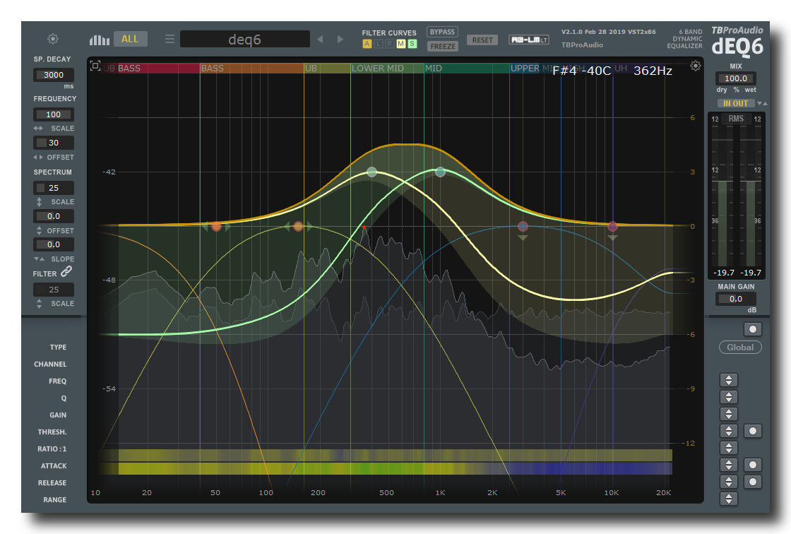 dEQ6 is a 6+2 band stereo/MS dynamic equalizer with high quality oversampling and accurate spectrum analyzer.