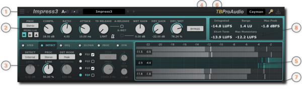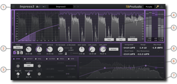 Impress3 supports you in mastering the extensive tasks in the field of compression in modern music productions. Impress3 is therefore more than just a compressor. It supports all loudness adjustment tasks, from compression and loudness matching to limiting and clipping.