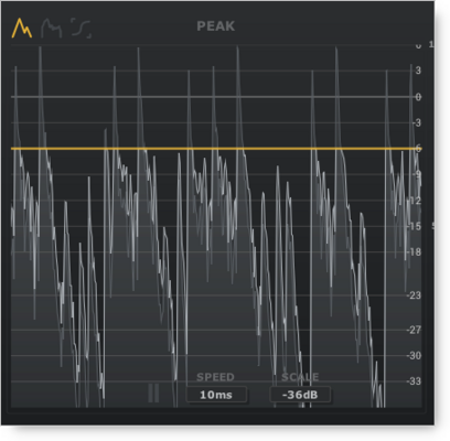 The peak display allows for efficient control of the effect of the clip ceiling level on the signal.
