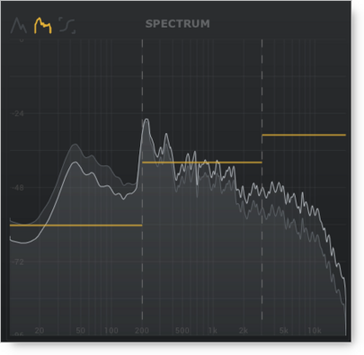 In multiband mode the spectrum display provides controls for the band level and crossover frequencies.